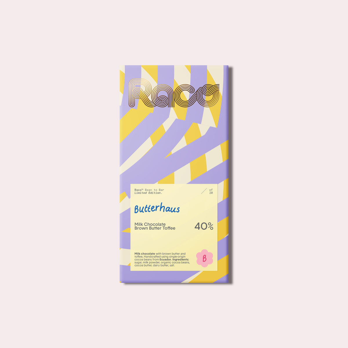 Milk chocolate with croissant crisps swirled in, baked by the Croissant Guy. Limited edition flavour.